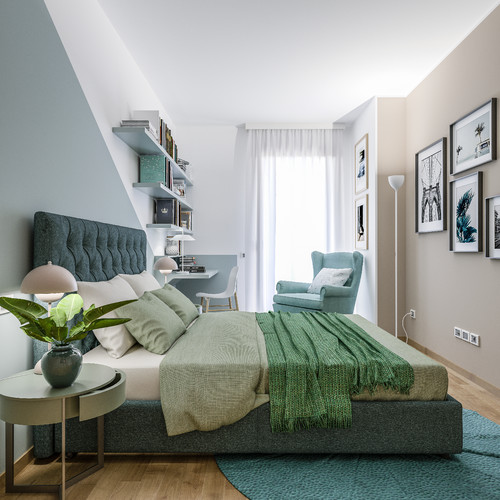 グリーン色効果のナチュラル寝室