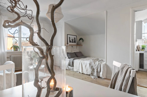 おしゃれ部屋の寝室に、万能なのが、グリーンの観葉植物、お花、又、ドライフラワーや古木なども、落ち着いた雰囲気を演出してくれます。